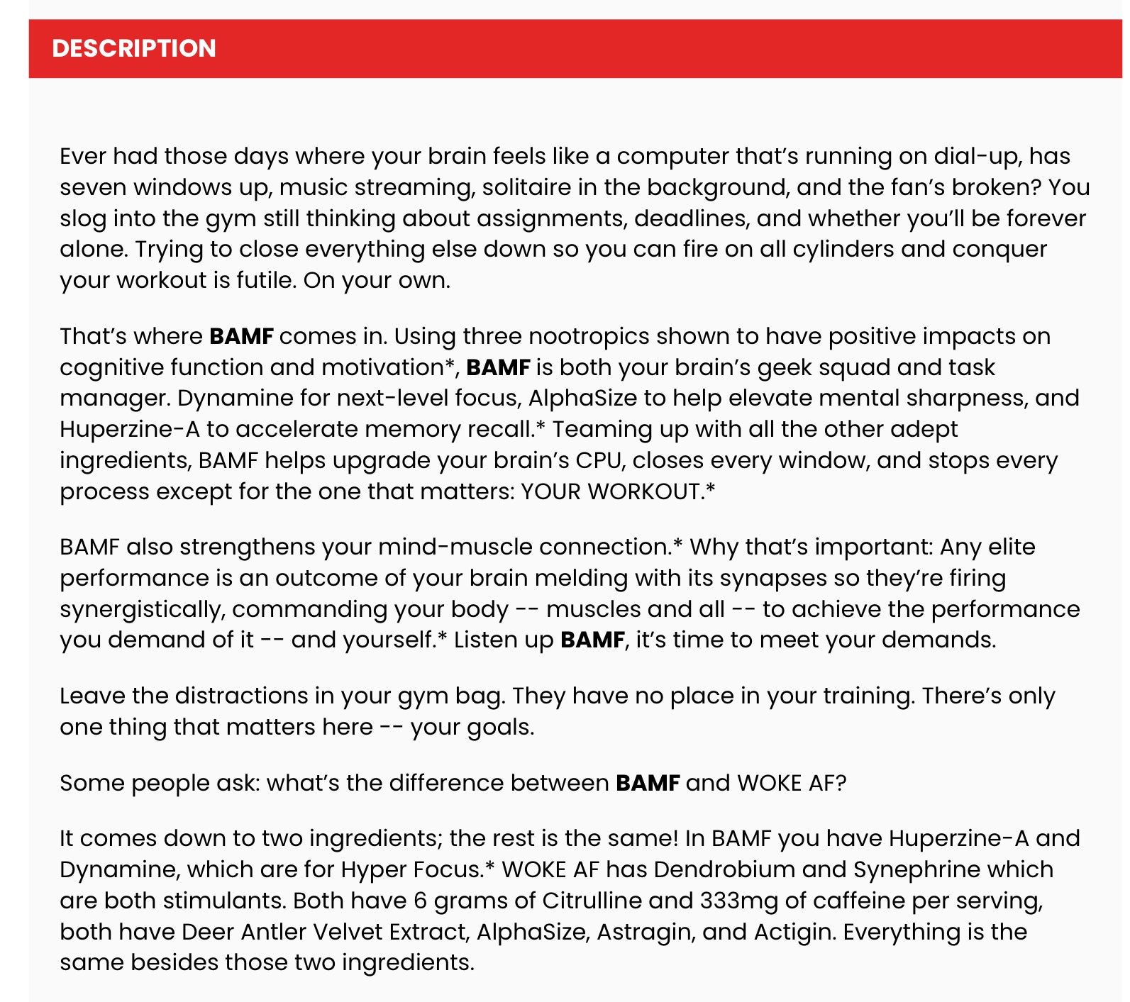 BAMF: The world's first TRUE nootropic pre-workout to help you reach Da-Vinci level focus*.